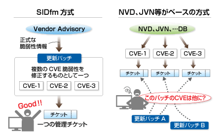 この違いにより、SIDfm の脆弱性の管理単位は、以下のようなアドバンテージがあります。