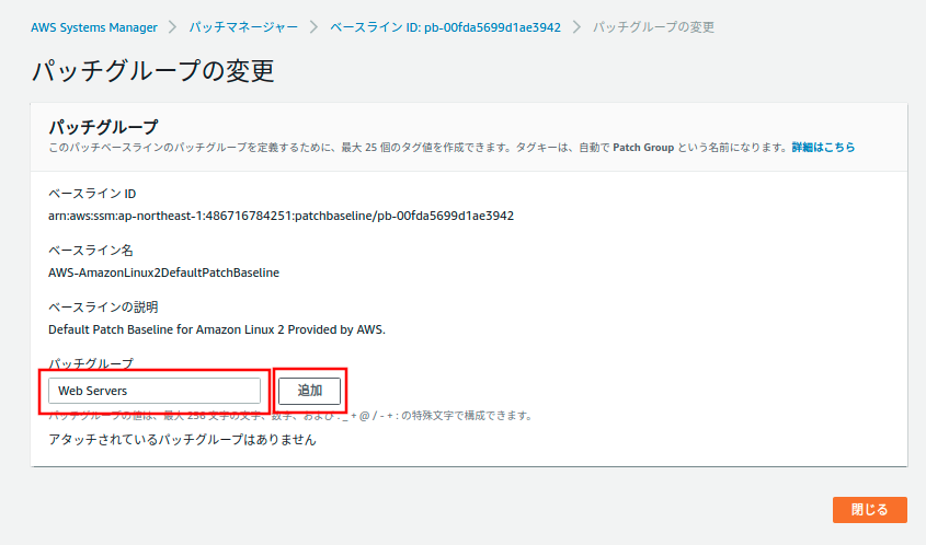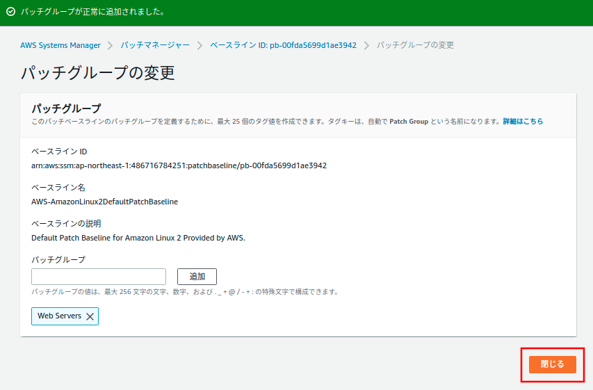 パッチベースラインに先程のパッチグループがアタッチされました。