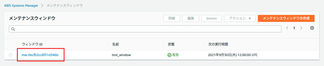 メンテナンスウィンドウが表示されました。 ウィンドウ ID のリンクをクリックしてください。