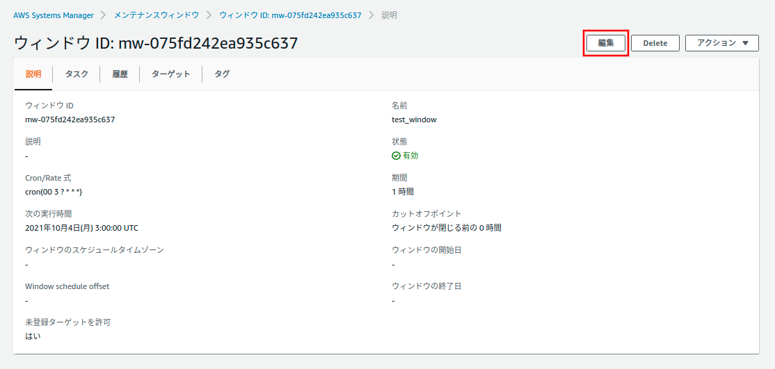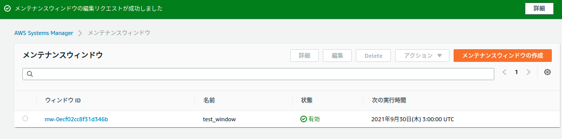 なおタイムゾーンは UTC となります。後ほどメンテナンスウィンドウの設定の中でタイムゾーンを変更します。