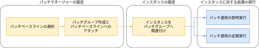 | インスタンスとパッチベースラインの紐付け | パッチグループ |