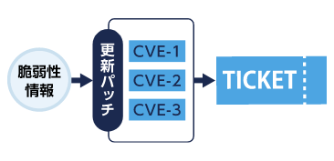 管理チケットは、基本的にCVE単位ではなくパッチ単位で管理。CVE毎に対応を検討する必要がないので、効率的に管理ができます。